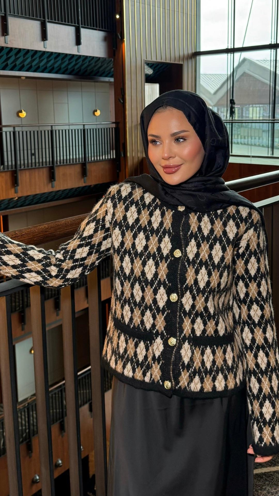 Baklava Desen Triko Hırka Siyah
