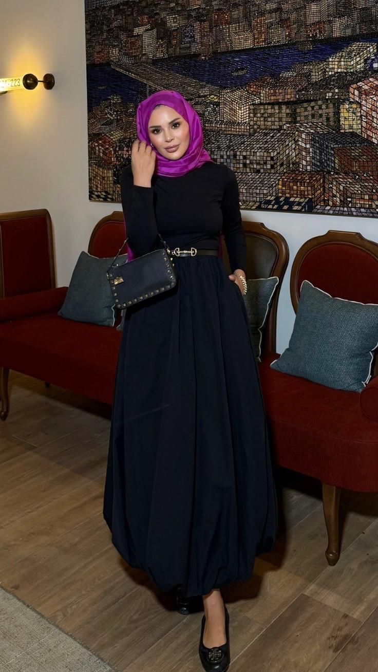 Balon Etekli Elbise Siyah