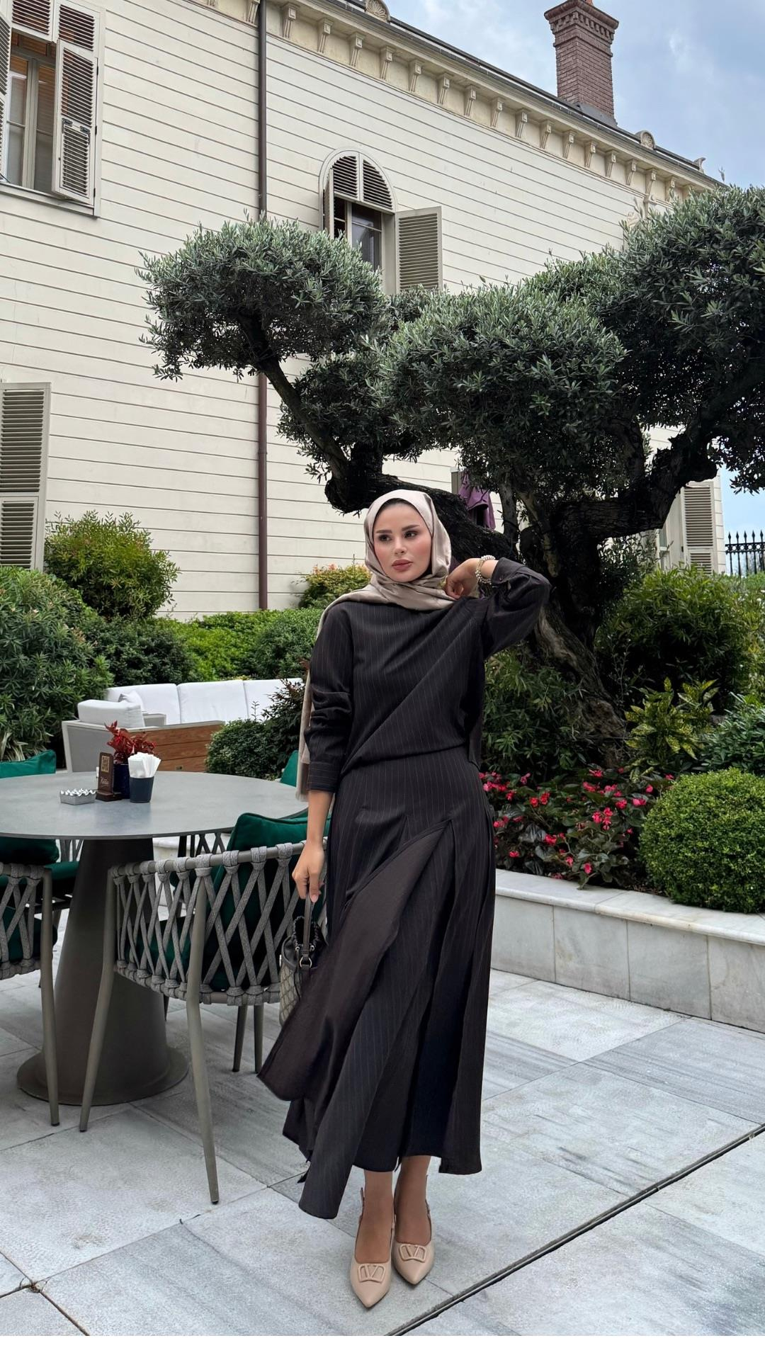 Çizgi Detaylı Aristo Etekli Takım Kahve