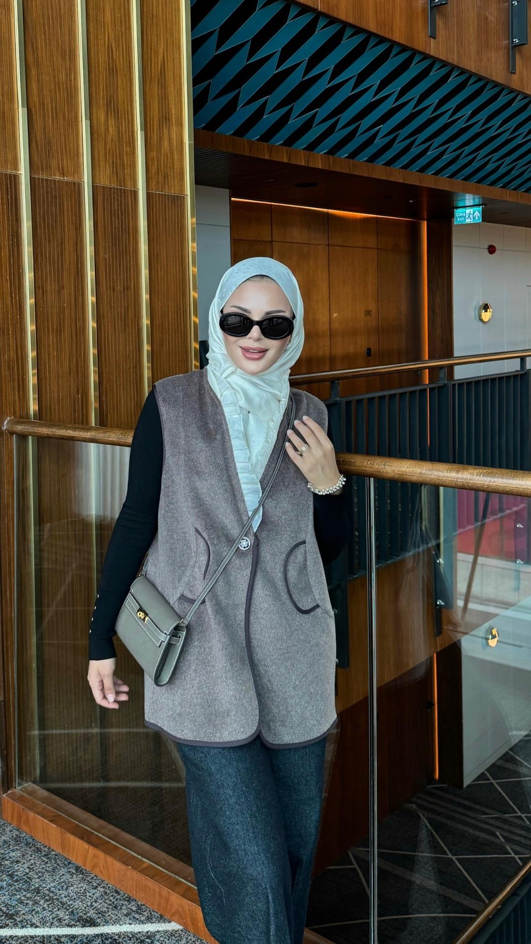 FIRFIR DETAYLI KAŞE YELEK KAHVE