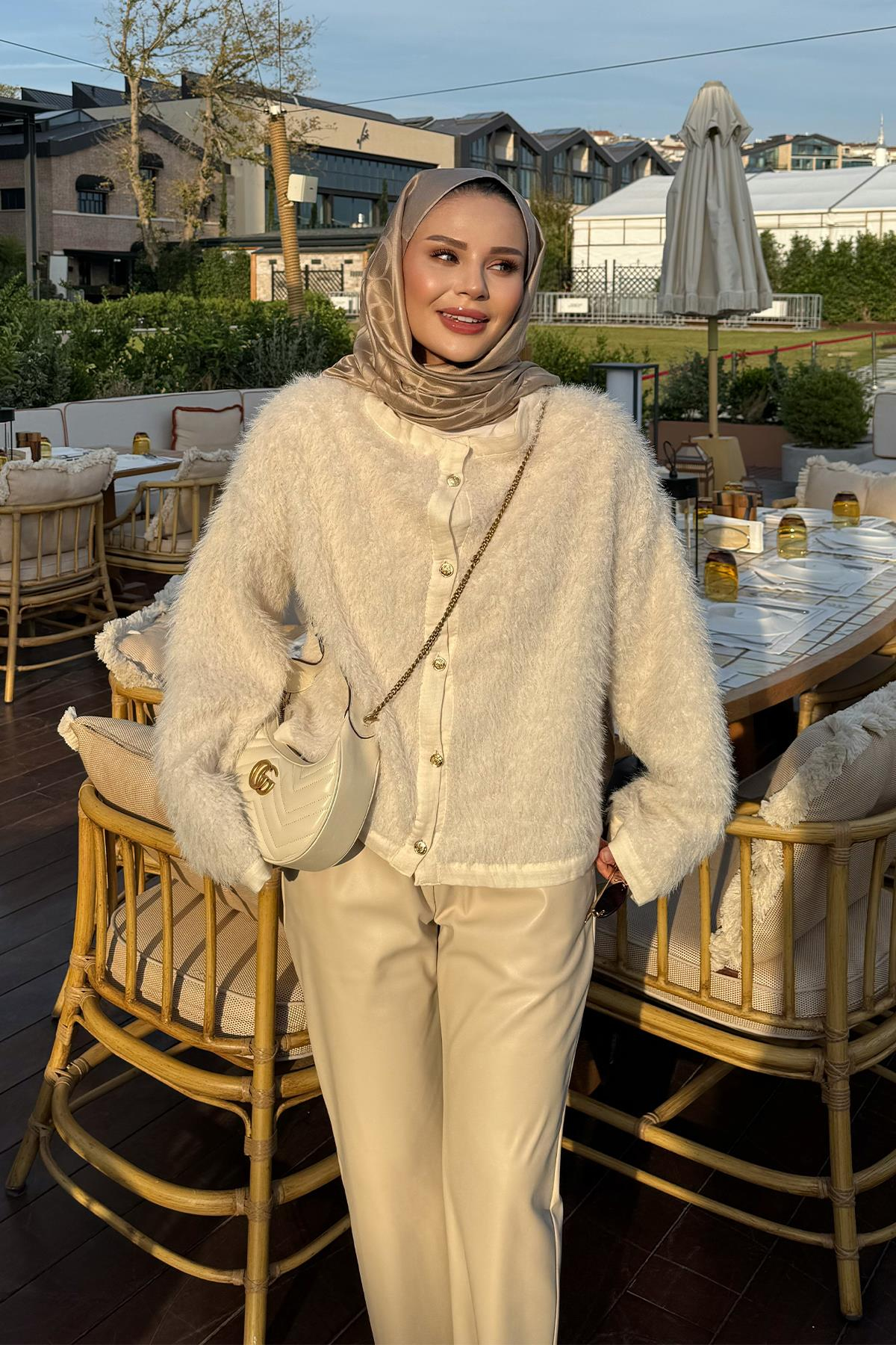 Gold Düğmeli Peluş Massimo Hırka Bej