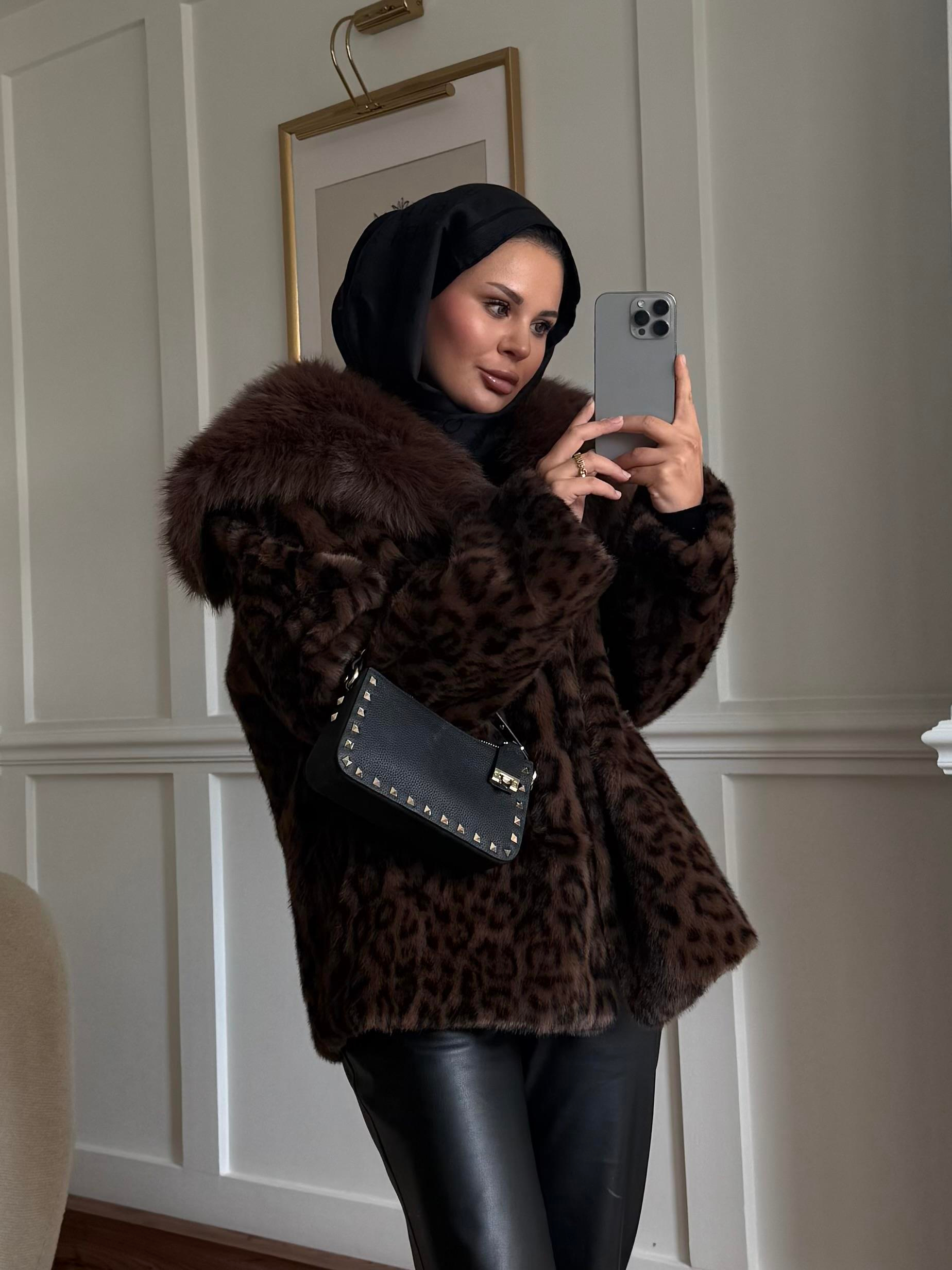 LEOPAR DESENLİ ALPAKA KÜRK Kahverengi