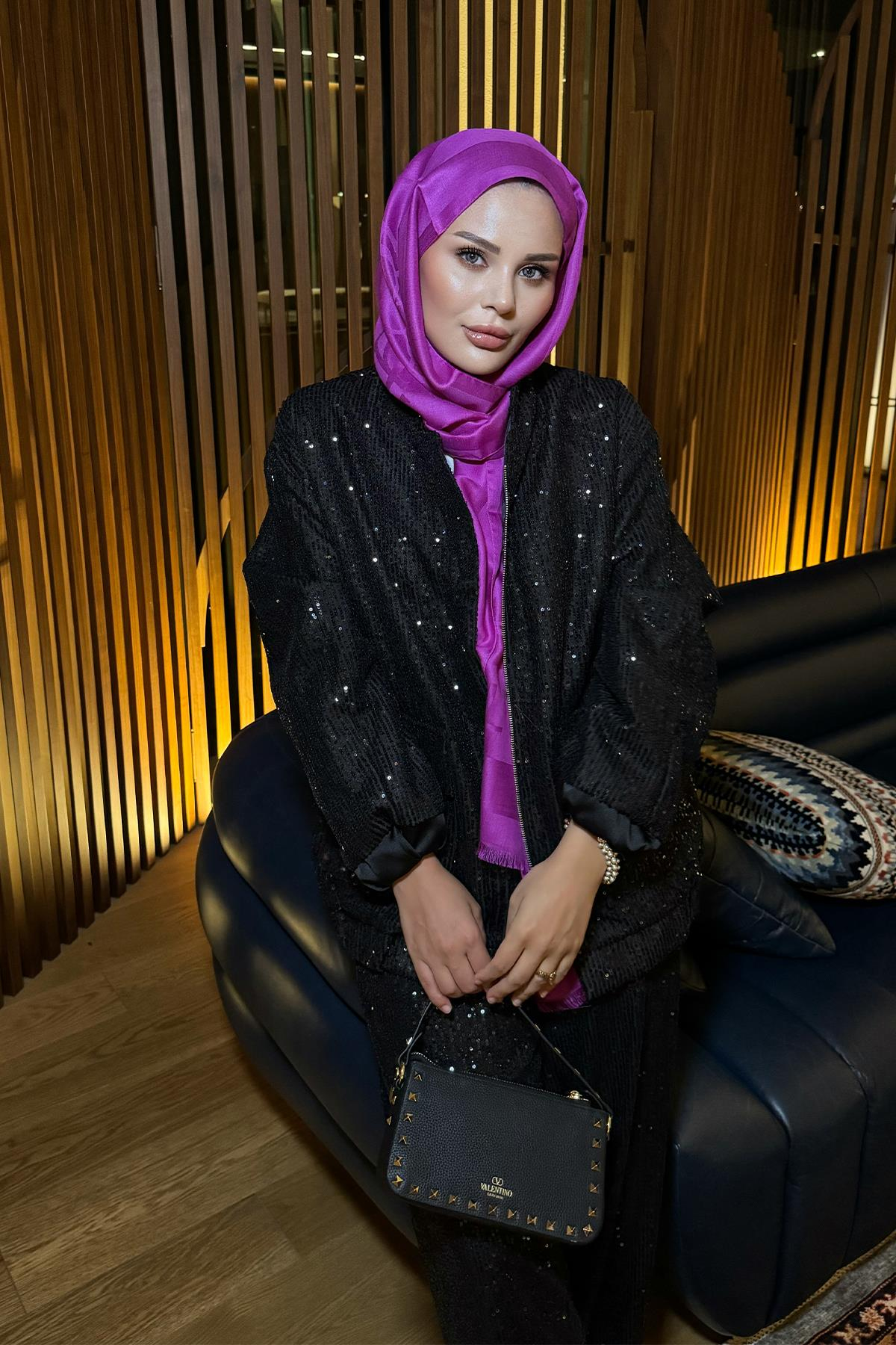 Pullu Gloria Bomber Ceket Siyah
