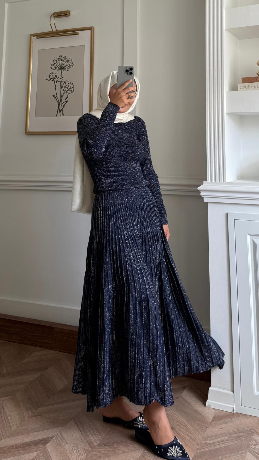 SİMLİ MERSERİZE ELBİSE LACİVERT