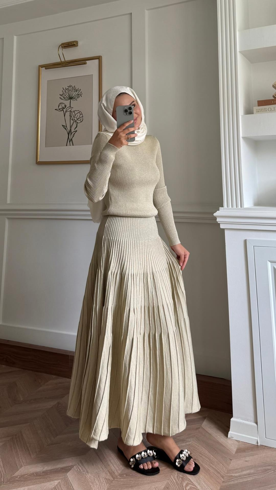 SİMLİ MERSERİZE ELBİSE VİZON