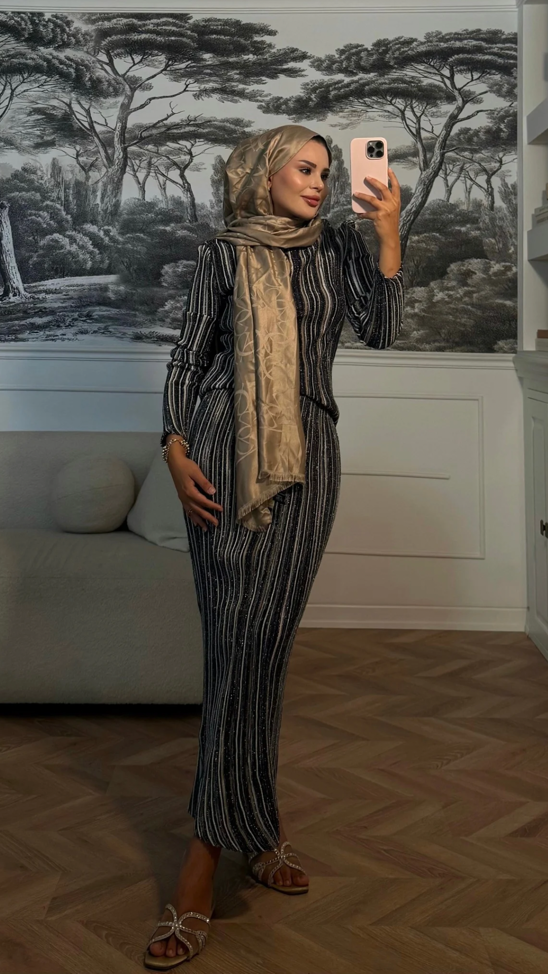 Simli Merserize Etekli Glıtter Takım Lacivert